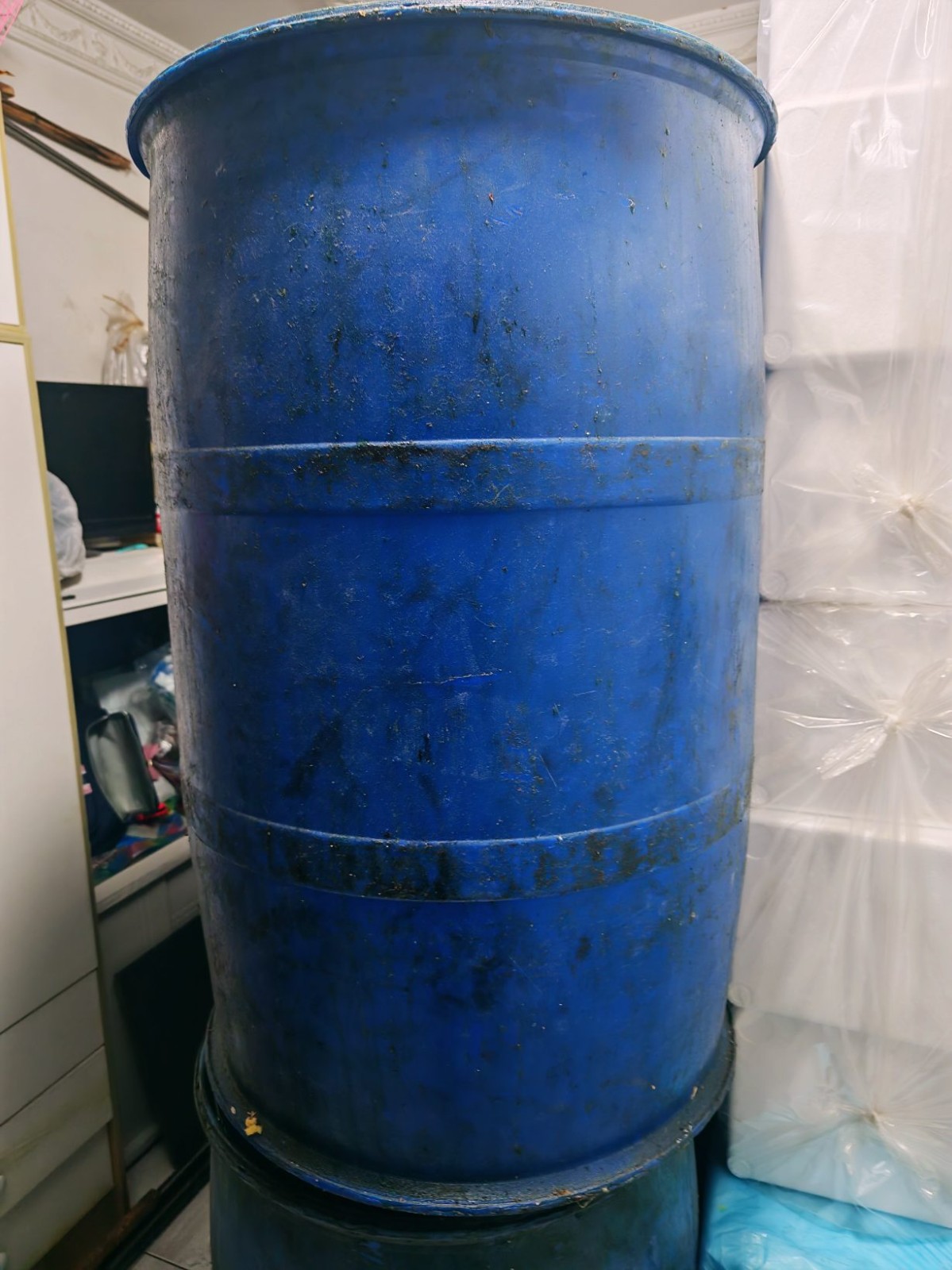 【200升大蓝桶,之前装豆油了,无异味质量好】 双圈,超厚 塑料材质,容量200升,适合储水、化工、养殖、运输等多种场景,价格低,25年买的没怎么用过肇东自提。