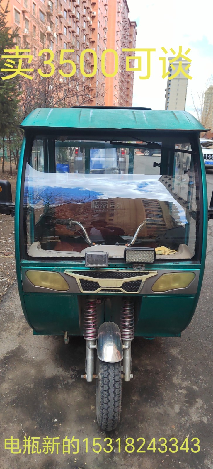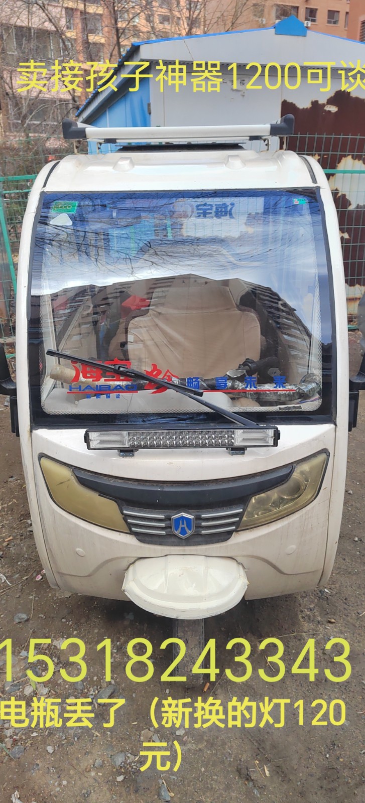 白色三轮没有电瓶,绿色新换一个月,新电瓶15318243343