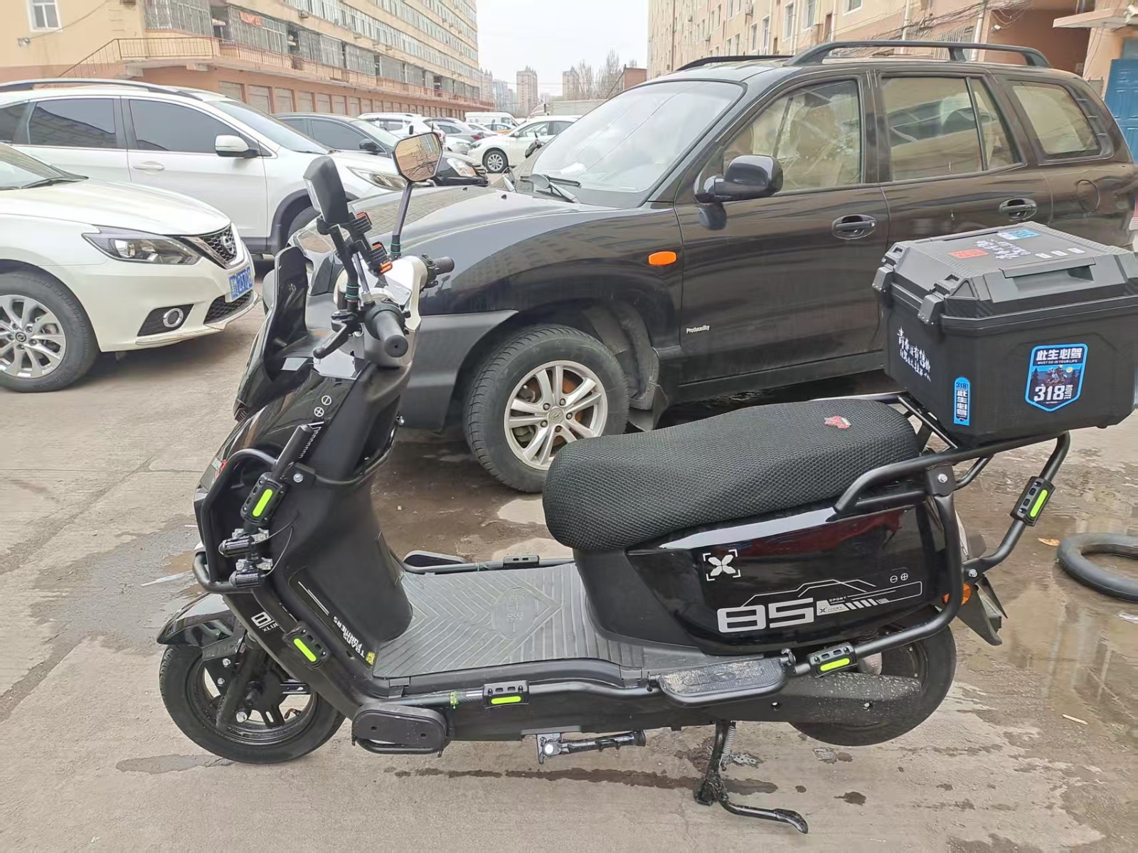 新车刚买不到一个月。合格证都有日期呢。用不上了赔钱转让。高配黑色踏板。带72v23锂电池3500打包。(也可分开出售) ☎133295135